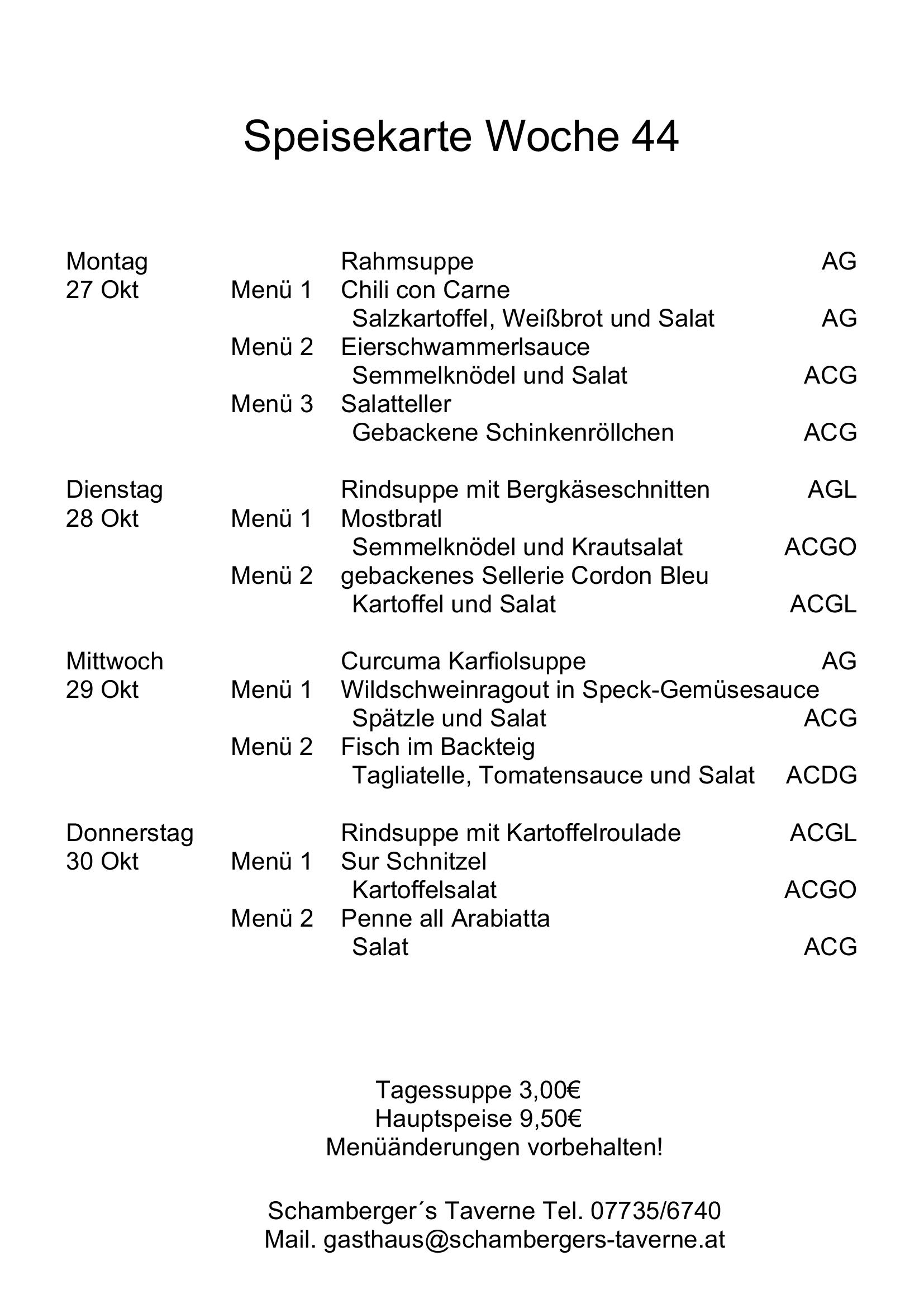 - Montag bis Donnerstag kann man zwischen zwei verschiedenen Mittagsmenü's wählen
